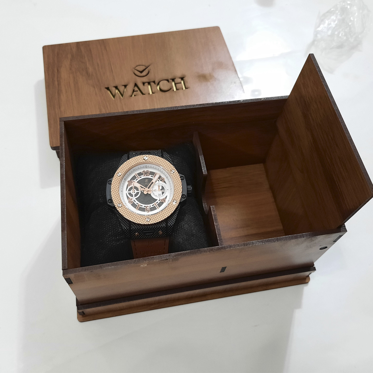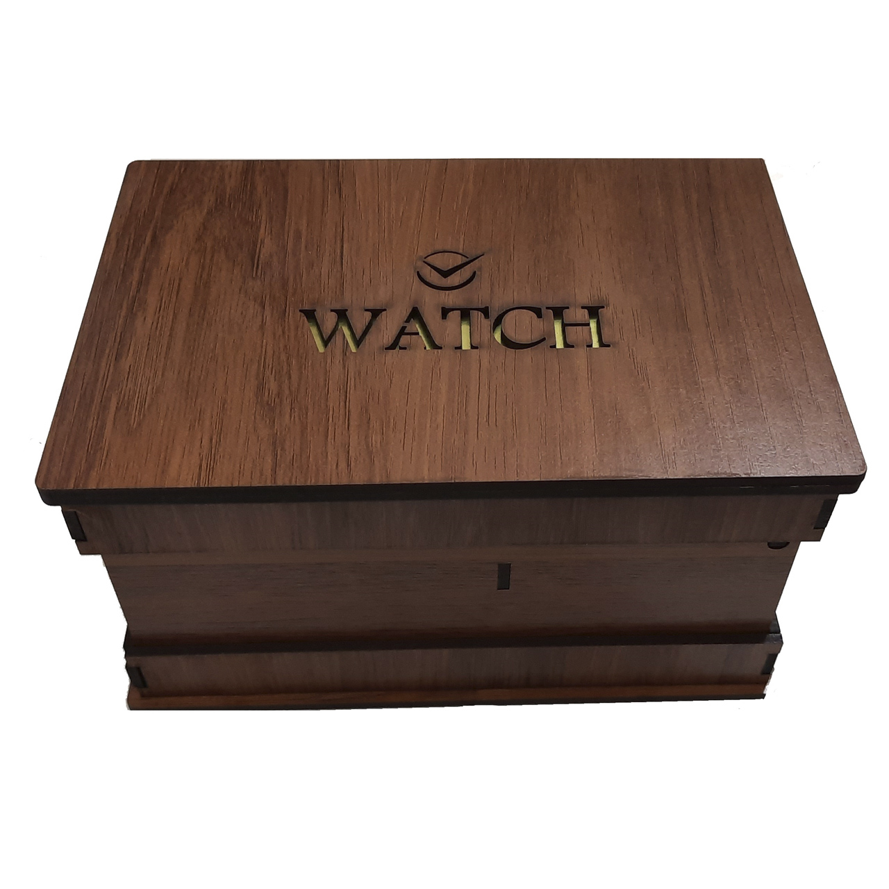 جعبه چوبی ساعت های مچی یک جعبه بالش دار به همراه یک در لولایی در کنار جهت نگهداری کارت و شناسنامه طلا و جواهر یا ساعت میباشد که دارای طول 17 و عرض و ارتفاع 10 سانتیمتر میباشد